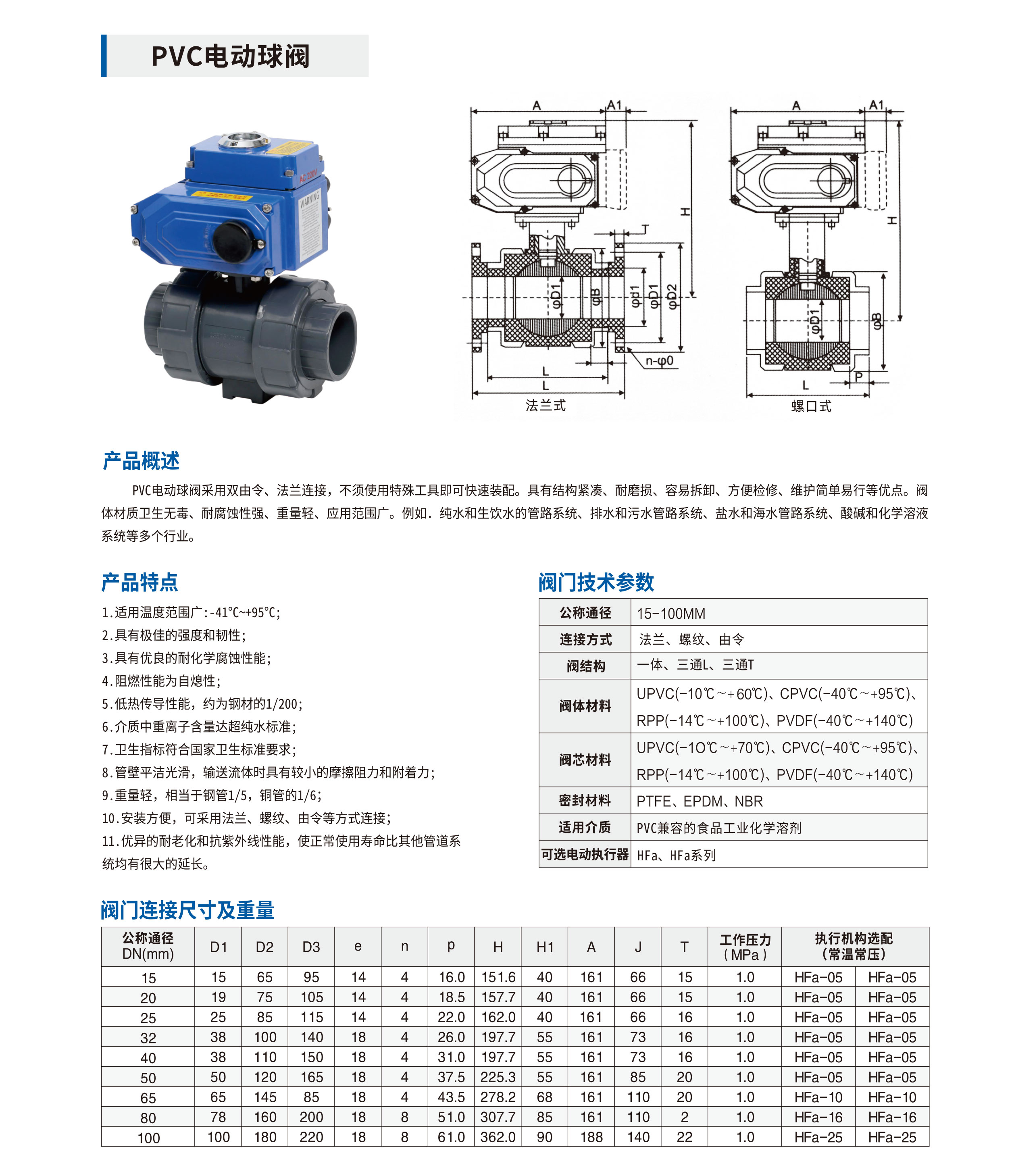 阀体材料 UPVC(-55℃-+701℃)、CPVC(-40℃-+95℃)、RPP(-14℃~+100℃)、PVDF(-40℃~+140℃