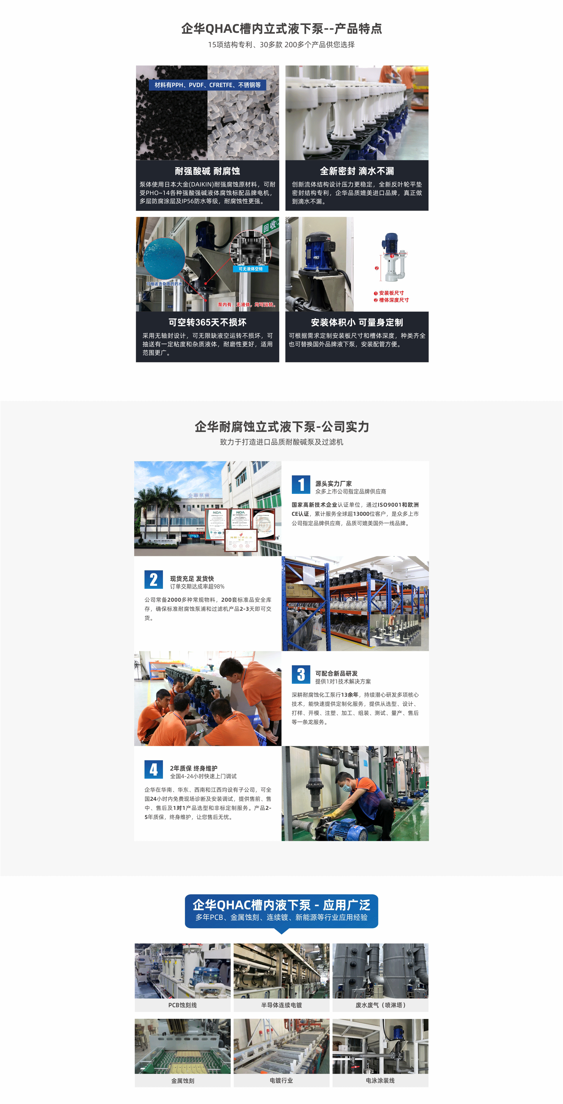 PCB蚀刻、金属蚀刻、半导体连续电镀、LED/LCD玻璃面板以及各种酸碱药液的循环输送等应用领域