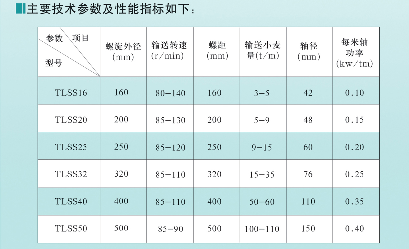 TLSS螺旋系列输送机是固定式密封连续输送机械设备。该设备借助螺旋叶片转动来推动物料前进。本设备具有占地面积小、密封性好、无粉尘、噪音小、结构简单、工作稳定可靠等特点。可地面安装或悬挂安装,可多点进料和卸料,用于粮食、饲料、酿酒等行业。